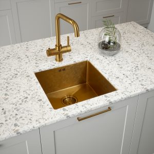 Comite single bowl Inset or Undermounted kitchen sink Including Basket strainer Waste – Over Size: 440x440x211mm